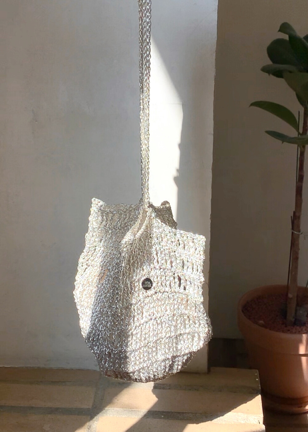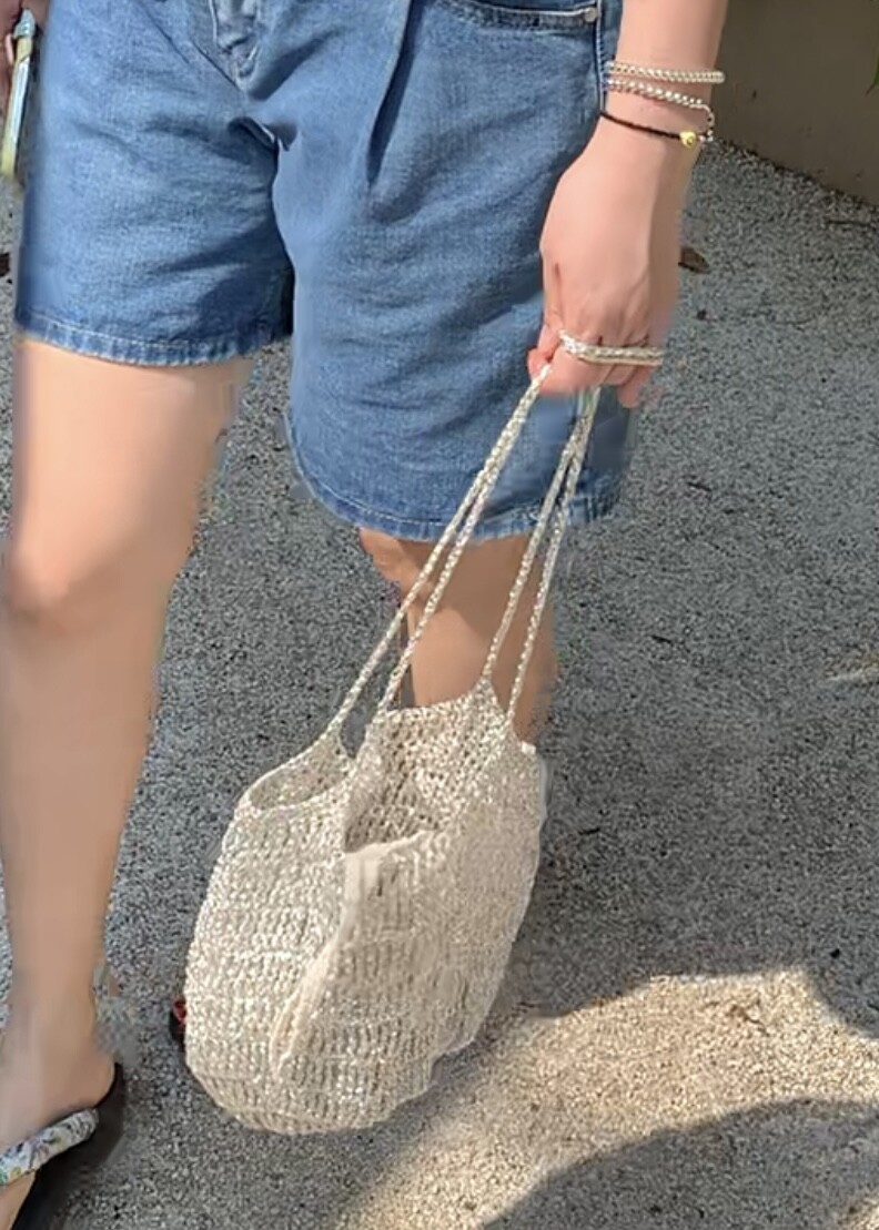 시원하고 청량한 분위기를 가득 담은 실버 네트백입니다.